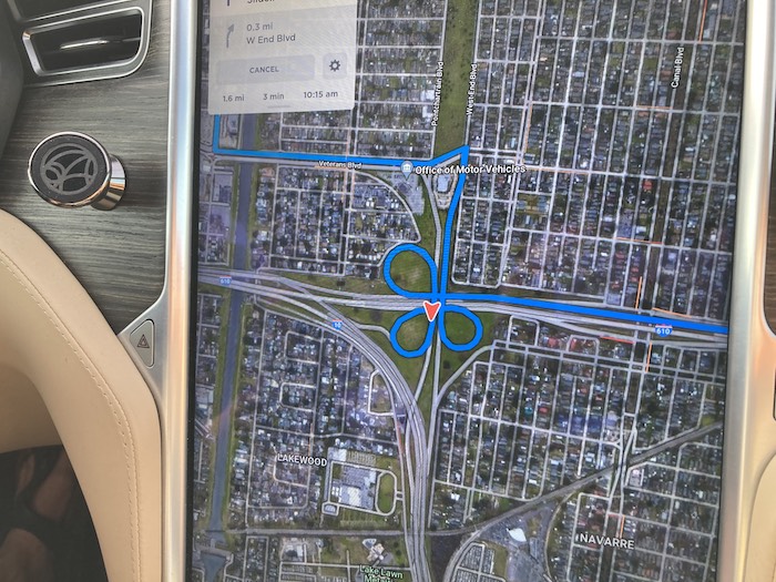 We drove to New Orleans “the back way” via hwy 90 and realized that NOLA storm cleanup is not too dissimilar from our Portland leaf pickup program…it’s the magnitude and implied heartache that differs. We stopped for provisions at the delicious Dong Phuong Bakery (recommended by our sister-in-law Anne who used to live in NOLA), navigated a wacky cloverleaf to get to our charging station and pushed on towards Texas.