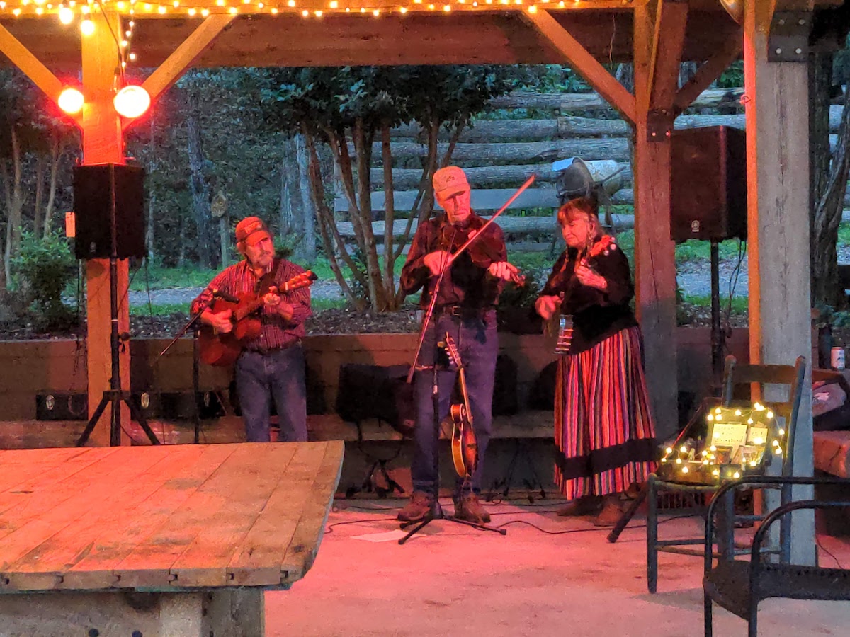 The next morning we drove to Virginia, and thanks to “The Dyrt” app, found a remarkable campsite which is a Summer camp for kids, but is open to the general public in the off season. We had a great time getting to know the other folks there, and were treated to a delightful Bluegrass concert by the “Indian Run String Band.” The evening built up slowly, but by the end the entire camp was dancing and at the evening’s climax the camp’s old blind Black Lab, “Preacher,” walked into the middle of the crowd and howled with joy. Because Heidi’s a ham and I know it’s always a good idea to follow her lead, we were the “lead couple” during the called part of the dance, and that’s what folks referred to us for the rest of our stay.