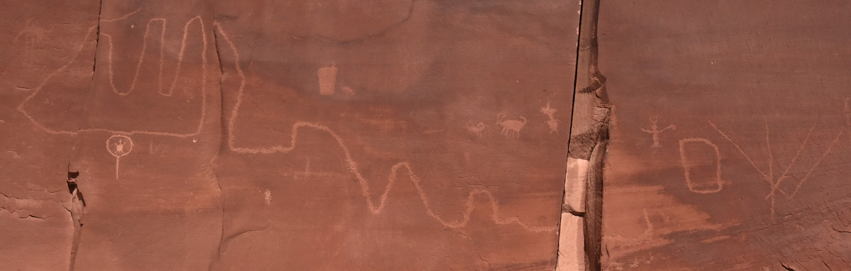 When we left off, we had just left Colorado, heading northwest towards home. At the prompting of nephew Brody, we stopped at the Hidden Valley trail not far from Moab. It was a boulder-y climb up from the parking lot, followed by a lovely path along a narrow (very hidden) valley, culminating in a beautiful collection of petroglyphs: