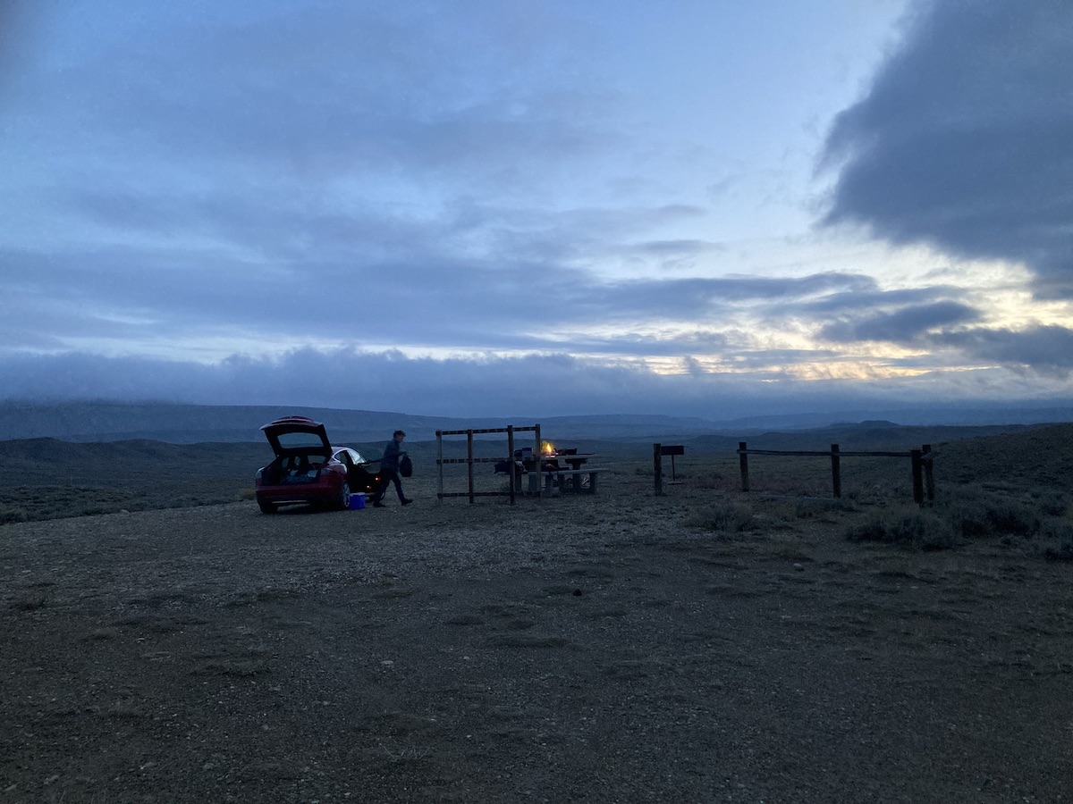 We are new converts to an app/website called The Dyrt. (Thanks Eileen!) and have used it a ton to find camping options. We have a tent with us, but sleeping in the car is surprisingly comfortable. And when it is 36 degrees outside, “camp mode” in the Tesla keeps us warm! We are also taking advantage of hotels because we are not THAT hard-core and do enjoy a good shower.