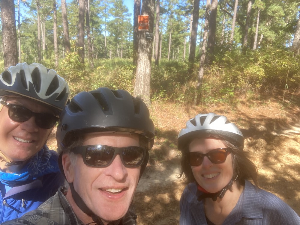 After reluctant goodbyes with new brother #1 Scott and his wife Beth in the very pretty Maggie Valley of North Carolina, we headed towards new brother #2, Ray, in lovely Thomasville, Georgia. We rolled in, met Ray & marveled at our connection and then spent the evening with some of his fabulous friends. Over the next few days we explored the red dirt roads of Georgia by bike and car, ate and drank through the ample delights of Thomasville, drove down to Apalachicola, Florida and swapped stories with Ray & company. Dylan and Ray share a fondness for bikes, music, books, science (and sci-fi) and more; we had much to discuss as we pondered nature vs. nurture and free will.